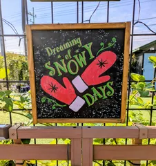 とっても素敵なミニサインボードですね✨ 周りに雪が降っているように表現されてて素敵です☺️