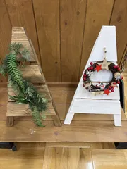 リーススタンド作りました😉色決めは迷いに迷って🌀ダークブラウンにしました。まだリースがないので、リースはこれから⋯クリスマス🎄🎁🎅に間に合うかな❓
