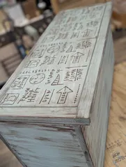 ペットシーツストッカー ■作品内容ペットシーツストッカー ■こだわりポイント以前に類似のトイレットペーパーホルダーを作った経験もあるので作成は難なく終了。こだわりはステンシルの文字。たまたまではあるが、ステンシルに失敗したのでウェットペーパーでふき取り。然しながら、ベース地は元に戻らず下地の色が薄くなってしまった