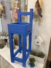 チェア型ミディアムガーデンスタンド♪ ■作品内容 チェア型ミディアムガーデンスタンドです。白を作って、とても良かったので、今回は色違いで作りました。 ■こだわりポイント以前いただきたランク5の塗料のブルーを使いました。とても発色が良くて、見栄えバッチリです。