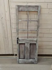 隣家との塀のアイデア。 ■作品内容隣家との間の塀のアイデア ■こだわりポイントWSで作ったアンティークドアを使用。周辺の雑貨もWS作品でまとめた。アンティークドアの窓部分は100均一で購入。ドアの裏側に購入した額受けを逆さに付けて隣家とのフェンスに固定。ドアの左右にはスノコをドアの色と同じバニラを購入して塗装。同