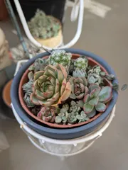 プロリフィカ ■作品内容 ピンクに染まってきたプロリフィカに似合う鉢に植えてみました😍 ■材料多肉 ■工程 可愛く見えるように植えてみました🎶