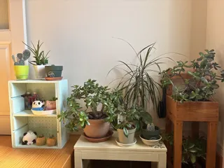 冬の観葉植物達 外に置くと枯れてしまうので玄関内の明るい場所に住まわせています♪春になったら、また広いお庭に出られるからそれまでの辛抱ですね🤗