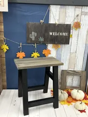 ミシン椅子 すっかりハマってしまったDIYワークショップでも久しぶりの参加。今回も実用性のあるミシン椅子ミニテーブルの時に少しがたつきが出てしまったので、今回は更に慎重に。がたつきもなく大満足の仕上がり。天板の色はいつものブラックをサラッと塗り、木目がいい感じに出ました。足部分はマットなブラック。アクセントにな