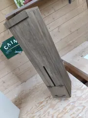 トイレットペーパーストッカー 今日は久しぶりのホームに帰ってきました。やっぱり落ち着きますね😌材料は桐材です。ちょっと苦手なボンドも見えています。 穴あけしてジグソー。桐が柔らかいので、サクサク切れました。組み立てはそんなに難しくなかったです。内側には色を塗らないので、マスキングします。ステインのウォールナット。今回は