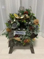 ■クリスマスリース■グリーンをバランス良く巻いていくのが大変でした。ひとつひとつの可愛い飾り付けが楽しかったです。カインズ工房で作ったリーススタンドに飾ってみました!※以下カインズクリスマス部門のみ入力■使用した商品