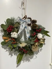 ■作品内容 クリスマスリース■工夫ポイント リースの土台から花材まで、ほぼ自家製で作ったリースです※以下カインズクリスマス部門のみ入力■使用した商品