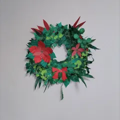クリスマス・リースとポインセチア ■作品内容■工夫ポイント※以下カインズクリスマス部門のみ入力■使用した商品 折紙、コピー用紙、マッキー、色鉛筆、液体のり、