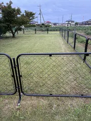 アメリカンフェンスと自立式支柱でドッグラン🐕 ■作品内容大型犬でも走り回れるドッグラン🐕■こだわりポイント入り口を2ヶ所作って家のウッドデッキから直接降りれるように作りました!ゴールデンレトリバーなので破壊される心配が減りました^ ^