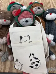 にゃんこサコッシュ ■作品内容にゃん祭りWS サコッシュ ■作品のこだわりポイント色のセンスが無いので黒一択で大人可愛い感じを表現しました。 📷はお友達ニャンコ@Hanamaruさんと一緒に