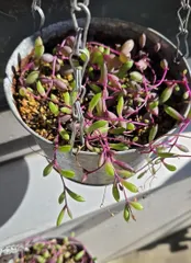 ネックレスは垂らしても地植えでも ■作品内容ネックレスの多肉が好きで今年はよく増えたので吊り下げたり、花壇にも地植えしてたりしました。■工夫ポイント根っこがあるとよく育つので根っこごと分けるといいです。■材料吊り下げタイプの鉢、花壇■工程上から垂らしたら下の土に付くように垂らすとそこで定着して増えてくれます。花壇にも根っこ部分を土で