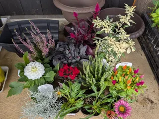 寄せ植えバイキング行ってきました🎶 待ちに待った寄せ植えバイキング‼️3回並びなおして880円2つと550円1つ今回は選ぶ花が細かく決まっていて880円はA棚から1つB棚から1つC棚から1つライン友達はこの棚から1つって感じで…550円はB棚から1つC棚から2つです。やっぱりA棚のお花はよくてセロシアミステックシェードとダリアはどうし