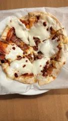 ピザ作りました ■作品内容ピザの具にモッツレラチーズとソーセージをのせて焼きました。モッツレラチーズをのせると本格的なお店で食べるようなピザが簡単に作れます。