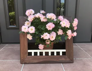 スタンド型フラワーフレーム 昨日作った作品です。木材45度のカット8ヶ所 ノコギリが苦手なのでやられました😂タッカーは好きな方なので問題はありませんでしたがよーく見ると微妙に枠が歪んでます😅でも、楽しく出来たので大満足です。