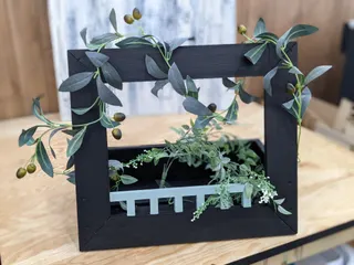 フラワーフレーム 去年からやってみたかった WS♡ おそらく、カインズでの2回目の WSでフラワースタンドを作っていて、合わせて置きたいと思いながら日程が合わずにいたので、今回こそは!と予約しました。 色も、白がいいかな、緑かなとそっちに決めそうになりながら、スタンドのブラウンと同じ色に。帰宅して