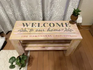 シェルフベンチ 2つ目のシェルフベンチ☺︎とっても楽しく出来ました。これもお気に入りです。