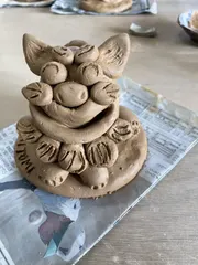 シーサー☀️ 沖縄でシーサー作りをしてきました😆丸められた粘土が3個出て来た時には、出来るのだろうかと思いましたが何とかなりました♡ 同じように教えて頂いて作っても4人ほんまバラバラでした笑 出来上がりが楽しみです♡