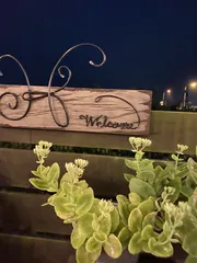 端材で作りました(๑>◡<๑) 私は庭のdiyをよくやります^ ^パーゴラやシーティングアーバー フェンスなどなど大作を作ると どうしても端材がでてしまいます^ ^そんな時簡単に作れるこんなの 良いですよ💕板をペイントして 汚しを入れて 盆栽用のアルミワイヤーでウエルカム作りました♪