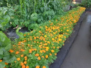 マリーゴールドのボーダー花壇が出来てきましたよー(^^) こんにちは。totoroです。5月下旬、チューリップの後に撒いたマリーゴールドの種がこんな風になりましたよー(^^) 草抜きをしたり、間引きを繰り返したりしながら手入れをしていくと夏の終わりごろにはもっときれいになると思います。楽しみでーす。(^^)/