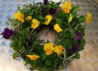 一輪車へフリフリ♪ ビオラ寄植え🌼