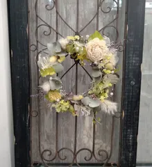 ドライフラワーのふんわり感と、優しい雰囲気の素敵なリースすね✨