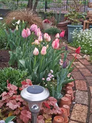 素敵なお庭ですね🥰 いろんな種類のチューリップが 咲いていて癒されますね🤩