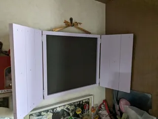 玄関に伝言ボード。 靴箱の上にとりあえず設置してみました。色は、薄いピンクです。