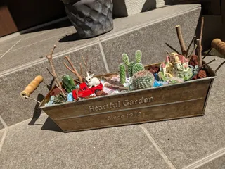 目つきの悪いうさぎサボテン畑に君臨 先日の諸田ナーセリーさんのWS。一個目にはこちらの器とフィギュアを選びました。目つきの悪いうさぎがワイルドで、サボテン畑にマッチしている…はず(笑)