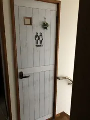 貼っただけです 100均の壁紙シートを貼りました。 重たい茶色のドアが明るくなって気に入っています!