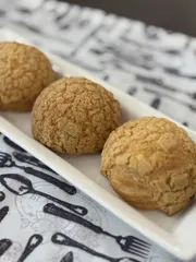 クッキーシュークリーム cooking funで、クッキーシュークリームを作ってきました💕 6個作って、2個膨らまなかった😹生地を冷やしすぎたのが原因かも💦 食べては、ザクザクで美味しかった中にカスタードクリームを入れるのに苦戦🤣シュークリーム屋さんは、やっぱりすごい👏