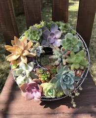 多肉ちゃん達が 生き生きとしていて綺麗で✨素敵なリースの寄せ植えですね😊