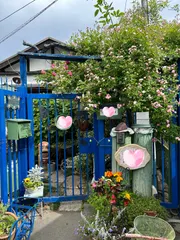 つるバラ群舞が見事に覆い被さる様に咲いて、お出迎えしてくれてます。 この下を潜って、玄関に行くだけでも幸せを感じますね。ようこそ、お花の楽園へ💐🌺🩷💕