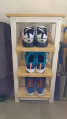 以前作ったハイテーブルを玄関に置いて活用したくて考えた末、靴置きにリメークしてみました☺️