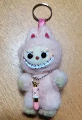 なんちゃってラブブNo.2ピンクちゃん💄 夕べ夜なべ仕事で仕上げてみましたピンク🩷は女の子でたっちの仕上がりにリボンでリング…ラブブキーホルダーっぽい感じリップのペンダント下げてみました…小さいけど2つ並べてディスプレイしました🩷