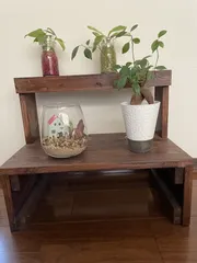 フラワースタンド2段 少し前に作ったフラワースタンド2段!一緒に飾ってある家🏠バコの中の、サボテンは、残念な事になってしまいましたが💦