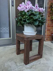 いいですね~ミニベンチ✨✨✨私も作りたいリストトップ3に入ってますが、なかなか回ってきません😅😅立派なシクラメンにピッタリな堂々とした花台になってますね~🤗