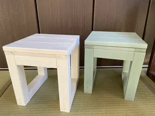 お得にミニベンチ❣️ 以前にも作ったことのある,ミニベンチ❗️その時も、800円で,お得🉐と思ったけれど,しばらく経った今回も,同じお値段で💓今回は,白の塗料で仕上げてみました🥰