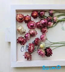 種から育てている帝王貝細工。次々と咲いてきて程良い大きさになったらカットしています。ドライフラワーにする為干してますが、何本かはワイヤーを通す事にしました。何に使おうかなぁと、リースもいいなと思うけど、まあるく花で埋め尽くす程はとれないと思うので、使うなら一部でしょう。帝王貝細工自体、育てるのは簡単
