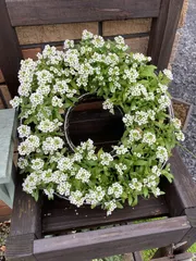 種からアリッサムを何回か育てていますが、売っているみたいには大きくできず💧ならばと、リースにしちゃいました🍀いい感じ♥️