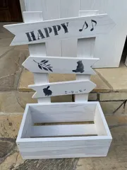 ガーデンサインプランター ガーデンサインプランターを作ってきました。白くでもステインみたいに木目もでる感じが好きです。ステンシルはちょっと苦手なのでスタッフさんにアドバイスいただきどうにか完成しました😅うさぎの後ろのちょこちょこっとしたものは、足跡なのだそうで私もまねっこしました。😊