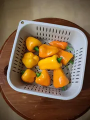 朝採りパプリカ 畑で採れたパプリカたち。まだまだみどりのがなってました。ハロウィンナイトに勝手に因んでこれからパプリカ調理します