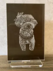 アクリルスクラッチアート🐶うちの子🐶 JAPAN DIY SHOW 2023行って来ました🤗朝イチから1日楽しんで来ましたが全然時間が足りなかったです🥹✨参加したWSの中でも1番☝️楽しかったのはこちらのアクリルスクラッチアートです🐶用意されていた下絵ではなくiPhone📱の中からうちの子を選びました🐶ルーターで一本一本スクラッチしてい