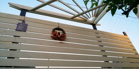 ハロウィンキャンペーン2022【フェンスと三角パーゴラ】 秋になり、DIYするには良い季節。寒くなる前には完成させたいと思い作りました。 長さ2500フェンスが完成したので合わせて投稿します。 庭の景色が変わりました。