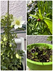 今日嬉しかったこと☺️ しばらく留守にしていたので、朝から庭のチェック! 嬉しい発見が三つありました。クレマチスの開花、零れ種からのネモフィラ(草丈が5センチもないのに花が咲いてる😱)、そして今年は咲かないとおもっていた紫の八重のクリスマスローズにつぼみ発見。クリスマスローズって結構咲く時期が異なるのですね、