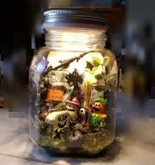 ハロウィンキャンペーン2022【ボトルライト】 100均雑貨で作りました。上からピンセットで入れていきます。