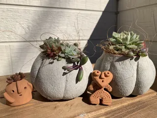 ハロウィンキャンペーン2022 『セメントカボチャの多肉の寄せ植え🎃』 セメントカボチャ🎃に、やっと、寄せ植えしました😅ギリ、ハロウィンキャンペーン🎃に間に合わせた感じです🤣可愛い土偶ちゃんと相性ピッタリ⁉️埴輪クンの頭上にも🌱