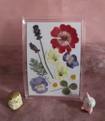 カインズのグリーンWSでのビオラとラベンダーがとても綺麗だったので押し花にしてみました❣️(子供の時以来です)アネモネ、クローバー、ノースポールは家にあったものです☺️他の色のビオラもあったのですが 上手くいきませんでした😥(しわが寄ったり色が綺麗にでなかったり) ハガキサイズのアクリル写