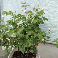 名前は ラ・マリエ 他の薔薇は名前札が薄くなったり飛んでいったりはては名前自体忘れてしまい、 でも、このマリエちゃんだけは名前を忘れることはありません。娘が、欲しいと言って買った薔薇、しばらく嫁ぎ先で娘が世話をしていましたが、もう無理!と昨年出戻ってきました。(薔薇だけね)冬剪定