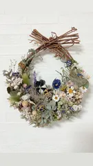 アレンジアワード2022 ワークショップで作ったドロップリース🍀🌸自分で作ったビオラとパンジーのドライを使わせて貰って作りました。