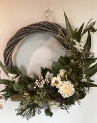 ドライフラワーのアレンジにも挑戦。 やっぱり、グルーガンは苦手だわ。 でも、春の訪れたを感じるリースです!